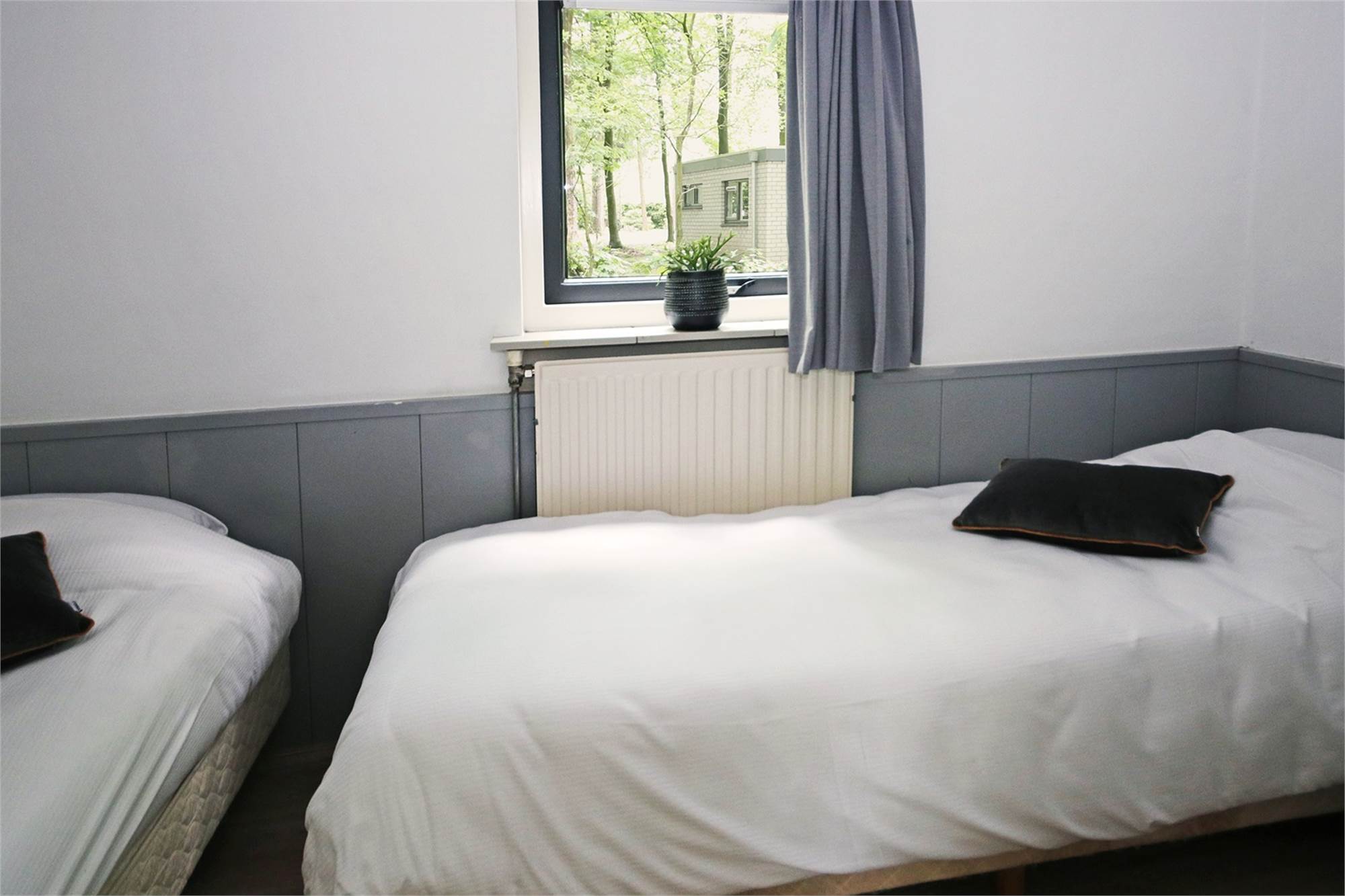 - Slaapkamer met twee 1-persoons boxspring bedden