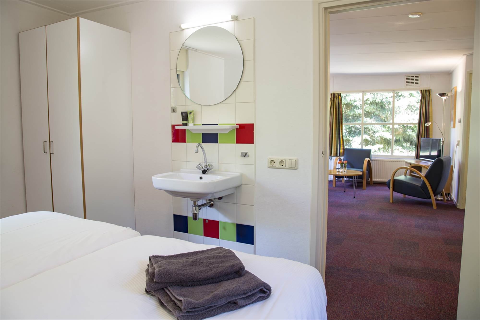 - Slaapkamer met twee 1-persoons boxspring bedden
