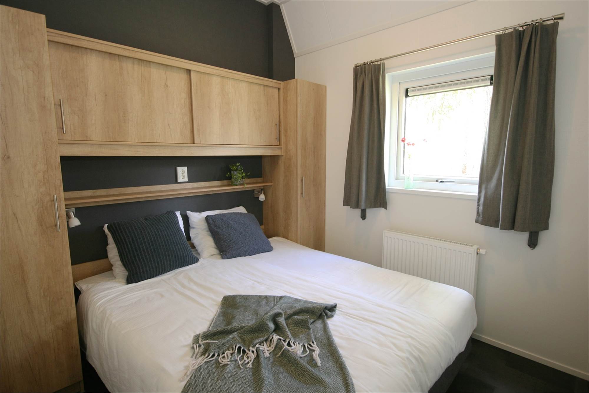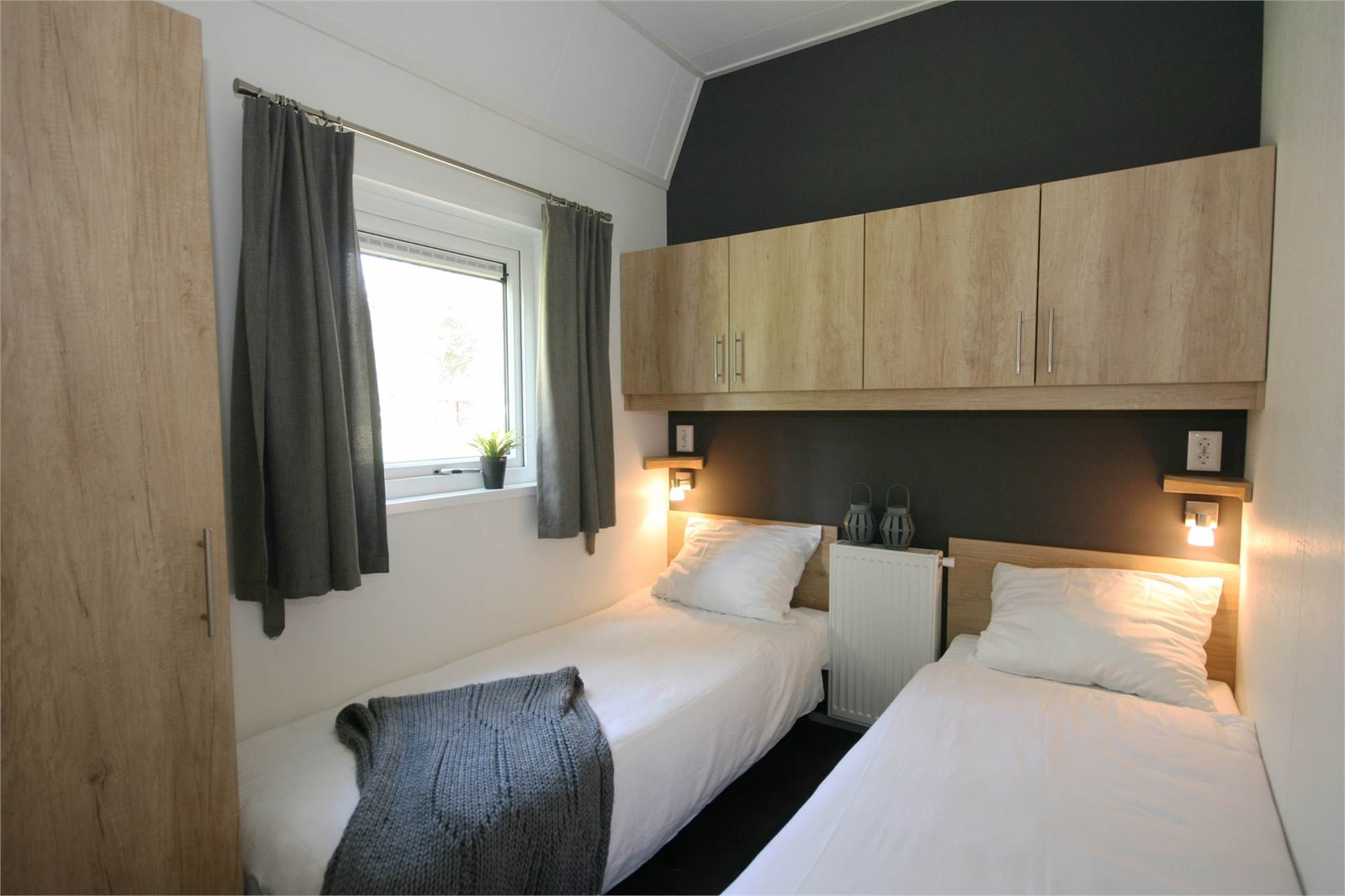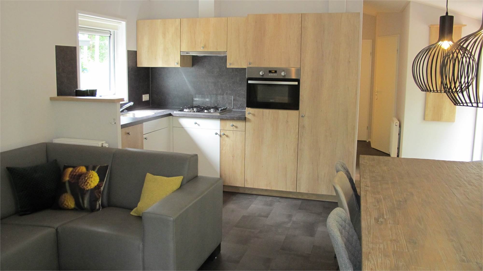 Algemeen/ligging Inrichtingskenmerken Woonkamer met terrasdeuren Stofzuiger Eethoek voor 6 personen Grote schuifpui CV Buiten Houten terras Terrasmeubilair Parkeren bij de accommodatie Verstelbare tuinstoelen Houten terras met veranda Ligbedden Audio/Video/Electronica Internet WIFI op het park Flatscreen TV DVD-speler Keuken Koffiezetapparaat Waterkoker Afzuigkap Koelkast met vriesvak Moderne open keuken 4 pits gaskookplaat Afwasmachine Combimagnetron Slapen Dekbedden 3 slaapkamers met twee 1-persoons boxspring bedden Aantal slaapkamers: 3 Sanitair Douche Apart toilet Douchecabine Wastafel in badkamer Thermostaatkranen Ruime wastafel Speciale kenmerken