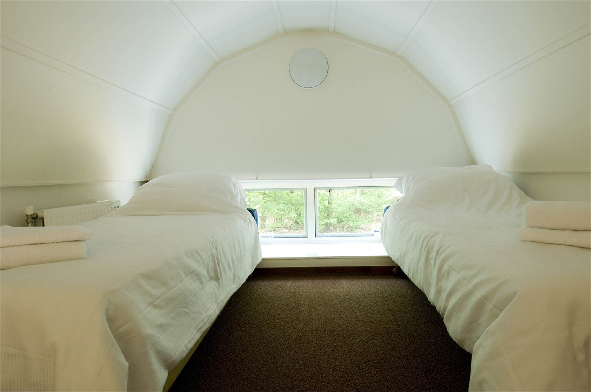 - Slaapkamer met twee 1-persoons boxspring bedden