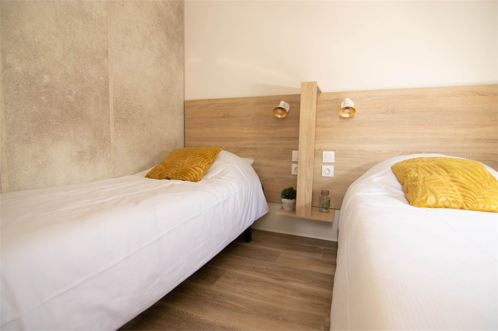 - Slaapkamer met twee 1-persoons boxspring bedden