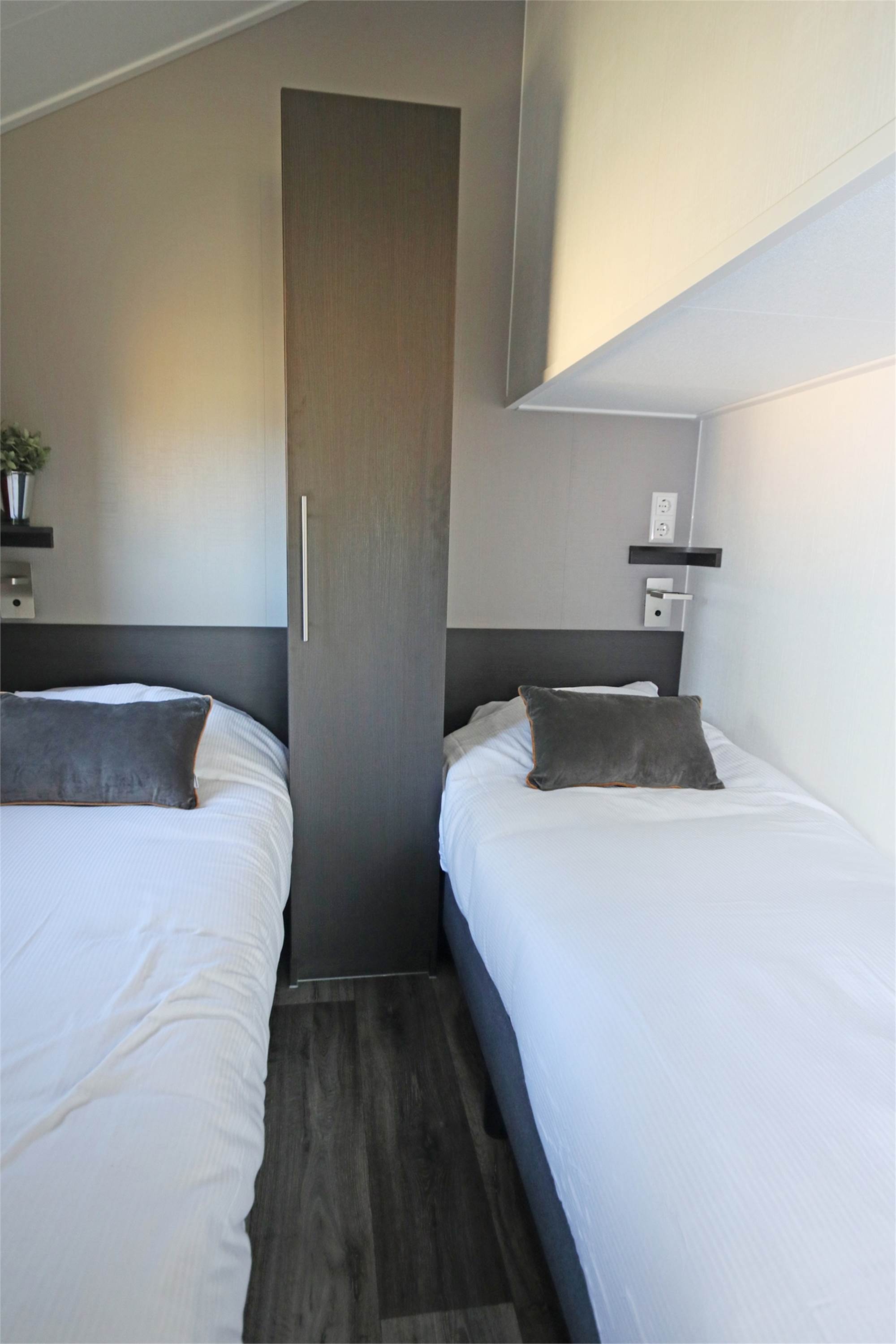 - Slaapkamer met twee 1-persoons boxspring bedden